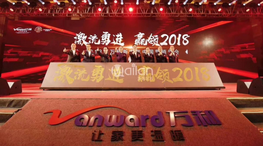 - 3月30日上午,在德勝河畔的喜來登酒店大廳,伴随著(zhe)火箭澎湃升空的震撼場景,萬和企業集團董事(shì)局主席盧礎其、萬和新電氣董事(shì)長(cháng)葉遠璋、總裁盧宇聰、常務副總裁盧楚鵬、監事(shì)會(huì)主席黃惠光、國(guó)内營銷中心總經(jīng)理麥春紅、國(guó)内營銷中心常務副總經(jīng)理方紅軍、熱能(néng)科技産品事(shì)業部總經(jīng)理兼國(guó)内營銷中心副總經(jīng)理王柱小依次從舞台中央的“神秘門”出現,随後(hòu)他們一起(qǐ)手持沙壺,將(jiāng)壺中的金沙澆灌于啓動台上,“激流勇進(jìn) 赢領2018”幾個大字緩緩浮現,萬和新電氣2018中國(guó)營銷年會(huì)正式拉開(kāi)了帷幕。